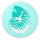 Digital skiss av en strimlad, autilus-snäcka - mjuk turkos och vit snäcka mot bakgrunden av pastellakakvat