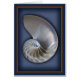 Den inre halvan av en nautilussnäcka på en blått som matt fastställd insida en skugga boxas ramen, verkställer.
