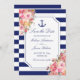 Nautisk ankare Blommigt Blue Rand Bröllop Spara Datumet