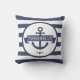 Nautiskt ankare med marinblå randtema utomhus kudde.
