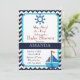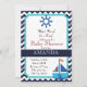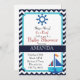 Chevron Rand och Nautical sailboat-babydusch med ett nautiskt tema, en segelbåt och blått chevron rand.inbjudan till pojkar