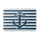 Vattenbad med ankare och vitt och blått rand. Det är en medelhög storlek badmatt och mäter 20 tum vid 30 tum.