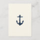 Nautical Blue Anchor Snyggt Modern Ocean Bröllop djurutrymmeskort med ankarillustration på baksidan