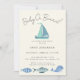 Nautisk blå Baby ombord på en enkel pojkskuss Inbjudningar