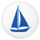 Den här nautiska keramiska knoppen har en klassisk segelbåt i marinblått.