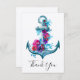 Modernt handmålat och sedan digitaliserat blomsterankare i vattenfärg med vit bakgrund på "tack"-kort.