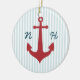 Minnessakprydnad som koordinerar med mitt nautiska bröllopfölje. Rött ankra på blått och en vit görad randig bakgrund.