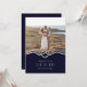 Bröllopskort med marin tema som du kan anpassa med ditt eget foto. Den har ett gyllene rep som är knutet i en hjärtform.