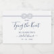 Dessa moderna och stilrena etiketter för mousserande vin till nautisk brudkväll har en repliknande knut högst upp och den passande nautiska frasen ”Tying the Knot” i ett trendigt handskriftsliknande teckensnitt, i en klassisk färgsättning i vitt och marinblått.