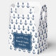 Navy Blue anchor anpassningsbar nautisk bröllopsfest favurbox med handtag. Lägg till ditt eget tack för anpassningsbarna och namn eller brev i monogram av brud & groom plus datum för giftermål. Fästsymbolen för den akuta maritima frakten mönster skrivs ut med klassparentesetikett på båda sidor för nygifta par. Anpassadets bakgrund färg. Tack för att ni kom till stil. Luxij ge är borta för gäster, vänner och familj. Även trevligt att tacka brudtärna, blomsterflickor och marskalkar. Elegantens typografimall. Personliger som är utskrivna med en populär ankarikon. Lägg till din egen innehåll. Lägg i sak som souvenirer, godis, torkad frukt, hemlagad mat, leksak, chokladkyssar, kakor, m&m, gelébönor, tryffel, nöt, små drycker, segling eller båtpresentartiklar osv. Trendig party förnödenheter och tillbehör till din speciella dag och plats. Och trevlig för möhippa på strandtemat, romantisk förlovning, sjömannens födelsedag, babydusch, affärsevenemang eller årsdag. Ändra kvantitet om du vill hämta billigten prist. Anchors, för gift par.