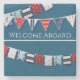 Nautisk buntdesign med segelbåtar, ankare, diffusa bokstäver och rand i färg av rött, vitt och blått, typiskt för nautiskt och kustnära uppehälle och havsfrågor. Anpassa till dina önskemål (t.o.m. ta bort eller ändra text).