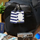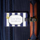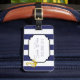 Den nautiska chic bagagemärkren presenterar marinblått, och vitrandar som överträffas med ett guld, ankrar.