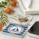 Nautisk konstruktion med dekoration i rund form av segelbåt på blå och vit strimlad bakgrund