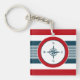 Nautisk design med kompass-dekoration i rund form på blå, röd och vit strimlad bakgrund