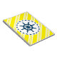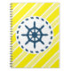 Nautisk utformning med segelhjulets dekoration på gulten och vit strimlad bakgrund