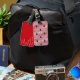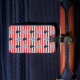 Nautisk design med segelbåt och kompassad dekoration på röd och vit strimlad bakgrund