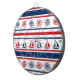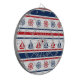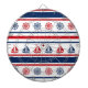 Nautisk design med segelbåt och kompassad dekoration på röd, blå och vit strimlad bakgrund