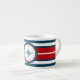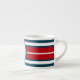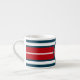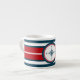 Nautisk design med kompass-dekoration i rund form på röd, blå och vit strimlad bakgrund