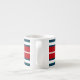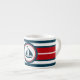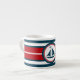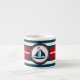 Nautisk design med dekoration i rund form på röd, blå och vit strimlad bakgrund