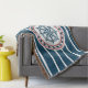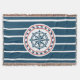 Nautisk design med kompass-dekoration i rund form på blå och vit strimlad bakgrund