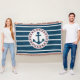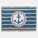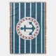 Nautisk design med ankarpunkt i rund dekoration på blå och vit strimlad bakgrund