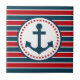 Nautisk design med ankarpunkt i rund dekoration med stjärnor på röd, blå och vit, rand bakgrund