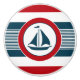 Den nautiska designen med segelbåtdekoration i runda formar på röd och vit görad randig bakgrund för blått,