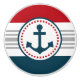 Nautisk design med ankarpunkt i rund form på blå, röd, grått och vit strimlad bakgrund
