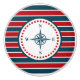 Nautisk design med kompass dekoration i rund form med stjärnor på röd, blå och vit strimlad bakgrund