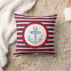 Nautisk design med ankarpunkt hand plockade dekoration på blå, röd och vit strimlad bakgrund