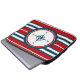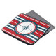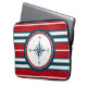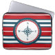 Nautisk design med kompass-dekoration i rund form på röd, blå och vit strimlad bakgrund