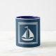 Nautisk tematisk utformning med segelbåtens dekoration i stripade fyrkanter på blå bakgrund