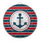 Nautisk design med ankarpunkt i rund dekoration med stjärnor på röd, blå och vit, rand bakgrund