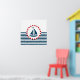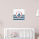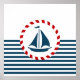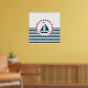 Nautisk konstruktion med dekoration i rund form av segelbåt på blå och vit strimlad bakgrund