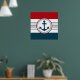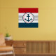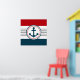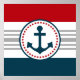 Nautisk design med ankarpunkt i rund dekoration på blå, röd, grått och vit, rand bakgrund