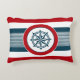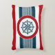 Nautisk design med kompass-dekoration i rund form på blå, röd och vit strimlad bakgrund