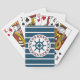 Nautisk utformning med segelhjulets dekoration i rund form på blå och vit strimlad bakgrund