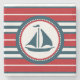 Nautisk design med dekoration i rund form på röd, blå och vit strimlad bakgrund
