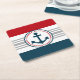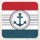 Nautisk design med ankarpunkt i rund dekoration på blå, röd, grått och vit, rand bakgrund