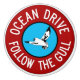 Dörrdra/knapp med bild av en havsgull och ord, Ocean Drive, följ Gull.