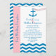 Denna nautiska efterbröllopsinbjudan finns i rosa och blå. Designen har ett ankare som kastas i ett sicksackhav. Du kan anpassa designen med namnet på bruden och brudgummen, dina äktenskapliga detaljer och detaljerna för din efterbröllopsfest för att skapa en fantastisk nautisk inbjudan. Copyright henishouseofpaper