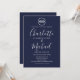 Med en fartygs knut och signaturstil namn, kan denna eleganta nautiska bröllops inbjudan anpassas med din information i chic vit bokstav på en marinblå bakgrund. Designad av Thisisnotme
