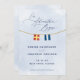 Nautical Boutique Co.:s minimalistiska nautiska bröllop spara datum-design ger initialer i flaggor till havs en söt pastel himmel blå bakgrund. "Vår Äventyr Begins" är i romantisk manusatrografi, och det är parat med modern blockering. Om du vill välja ditt nautiska flagga-monogram på den här designen går du vidare till https://nauticalboutique.co/specialty-products-promotions/nautical-flag-wedding-invitation-suite/ - du anger din information och får höger här till Zazzle!