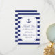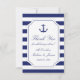 Perfekten för ditt nautiska tema bröllop, det här kustinspirerade tacket du kort har ett marint blåankare med rep och en blå och vit strimlad bakgrund. Anpassa med ert eget tack, namn från bruden och brudgummen samt bröllop-datumet. Baksidan av detta kort har en blå och vit randig mönster..
