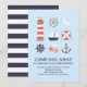 Den här nautiska födelsedagsinbjudan är perfekt för vuxnor eller barn! Har en fyr, kompass, segelbåt, snäckor, ankare med mera. © 2023 Tea Olive Co.