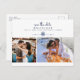 Dessa nautiska spara datum-vykort är för paret som inte kan vänta med att dela sitt bröllopsdatum med familj och vänner. Modern marinblå och vit två-fotogalleri-design på framsidan av vykortet är anpassad med dina foton, namn och bröllopsdatum. Lägg till din returadress och kommande bröllopsdetaljer på baksidan.