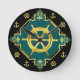 Nautisk frakt hjul/ankare/guld/svart/akva rund klocka
