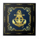 Nautisk frakts hjul/ankarplats marint blått/guld kakelplatta