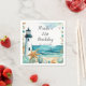 Vackra födelsedagsfest napkin med sjömanssvart och vit fyr, stjärnfisk och snäckor. Perfekt för en födelsedagsfest. Ord kan ändras till kostym med dina egna uppgifter eller krav