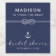 Nautiskt tema i marinblå vin-etikett för möhippa. "gifter sig" med en lina i en knutpunkt med ankare. Underbar idé för favörer.